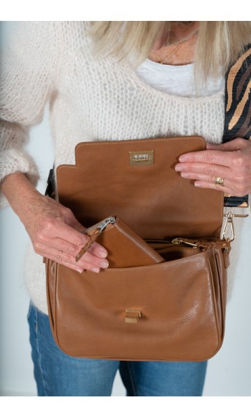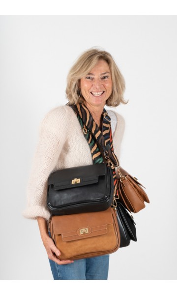 Caractéristiques : Fermeture par un rabat avec un fermoir tourniquet, 2 pochettes intérieures centrales zippées+1 poche plate pour téléphone: dimensions 25x19x9cm