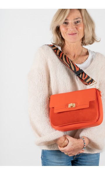 Caractéristiques : Fermeture par un rabat avec un fermoir tourniquet, 2 pochettes intérieures centrales zippées+1 poche plate pour téléphone: dimensions 25x19x9cm
